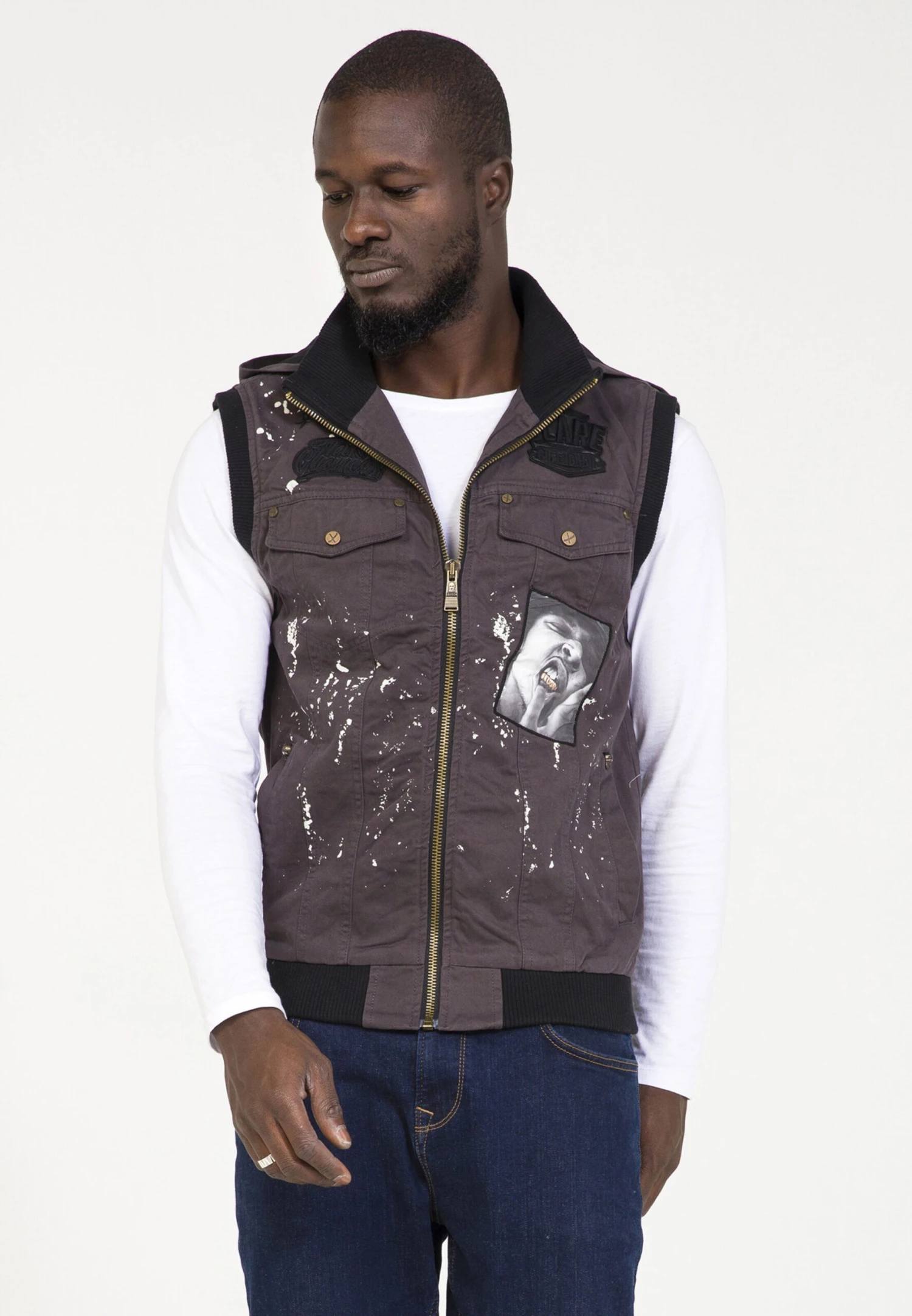 DenimKatoenRechte zoomCapuchon met opstaande kraagOp staal nadenStevige stofNiet gevoerd