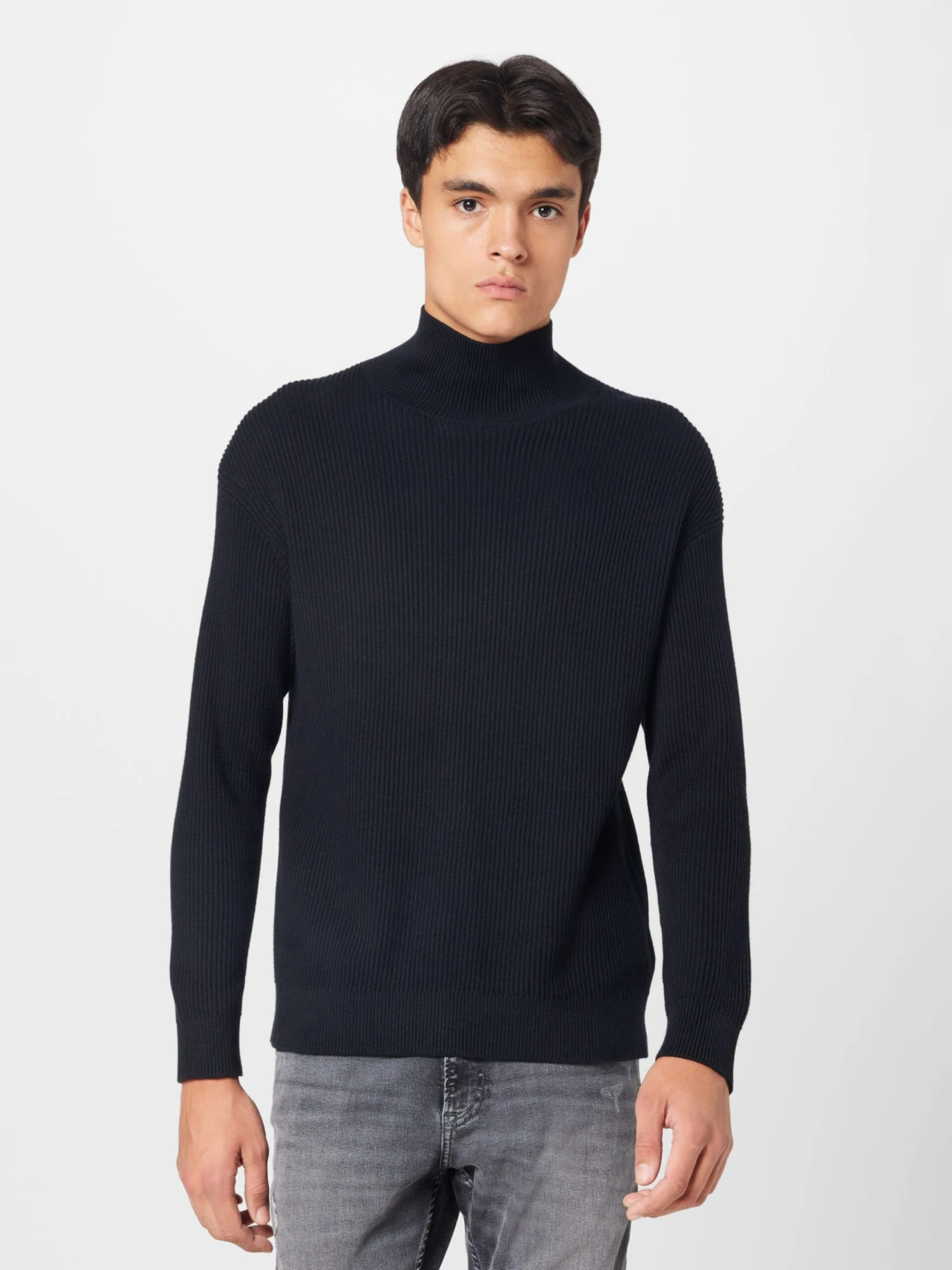 EffenKatoenOpstaande kraagGeribbelde kraagRechte zoomRecht modelFully fashionedMet textuur