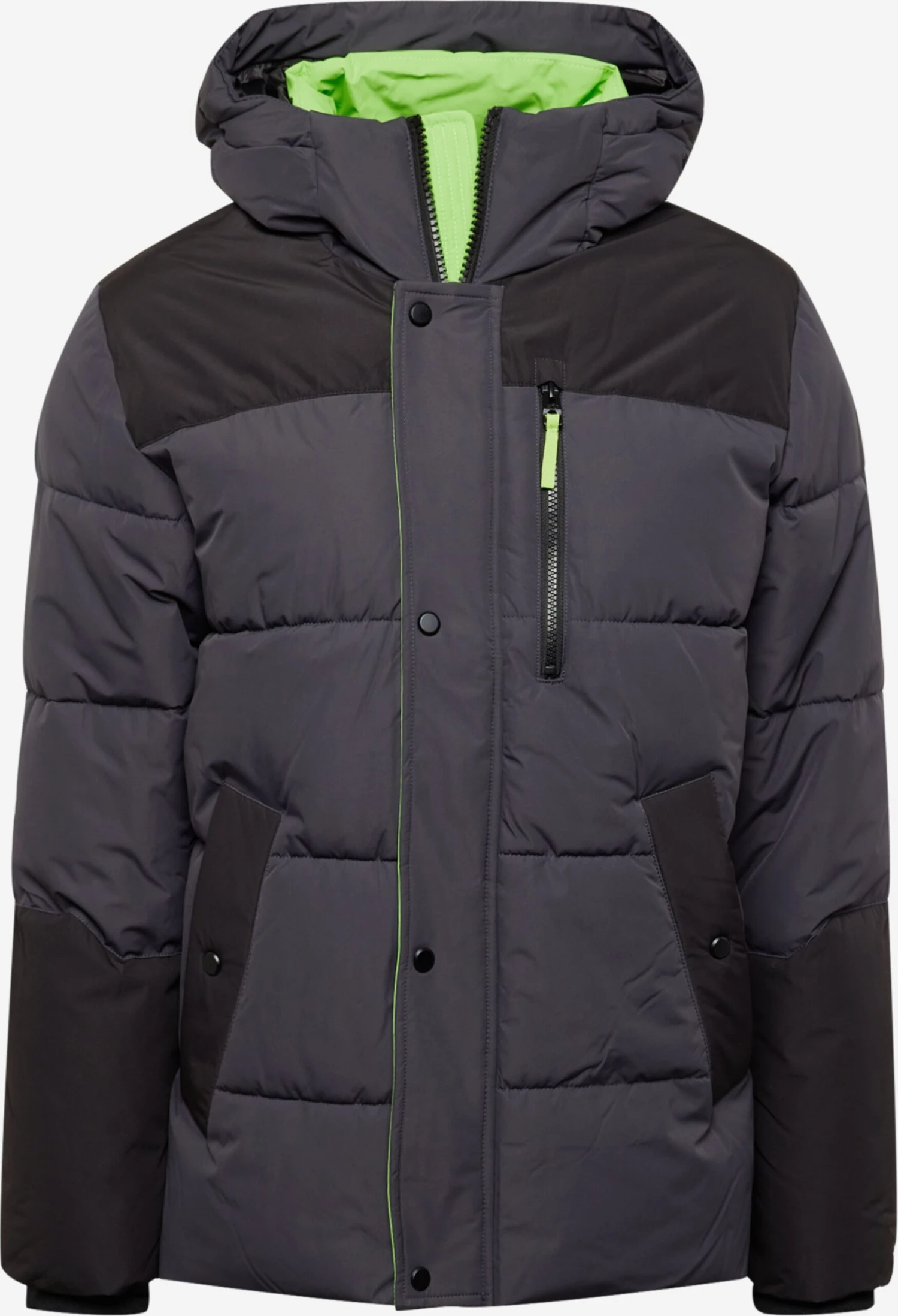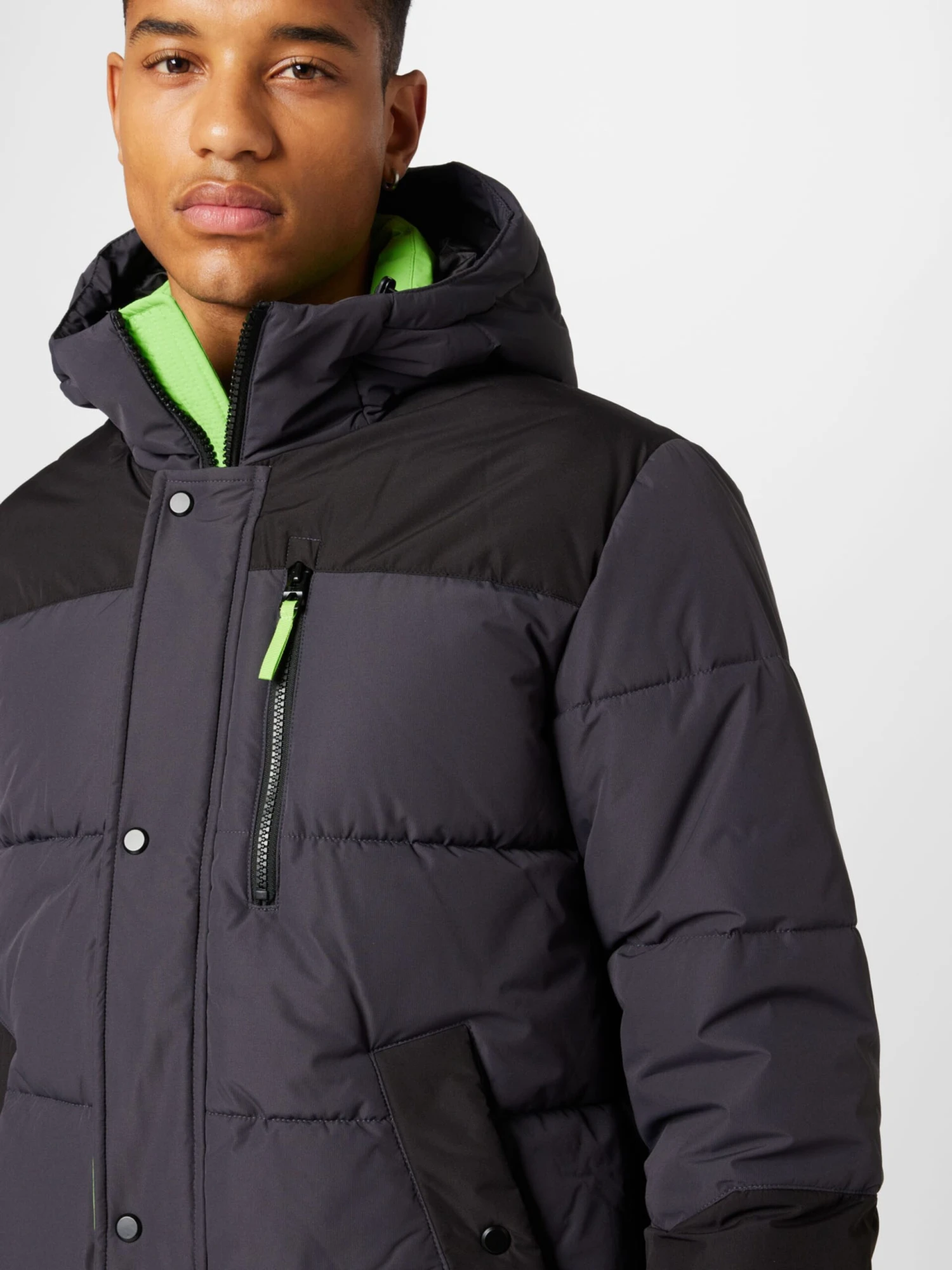 Color-BlockingGewatteerde jasDrukknopenRechte zoomCapuchon met opstaande kraagContrast voeringGeribd ceintuurtjeVerborgen ritsBorstzakZakken aan de zijkantStikselsOp staal nadenZware stofWarm gevoerdRitssluitingGerecycled polyamide