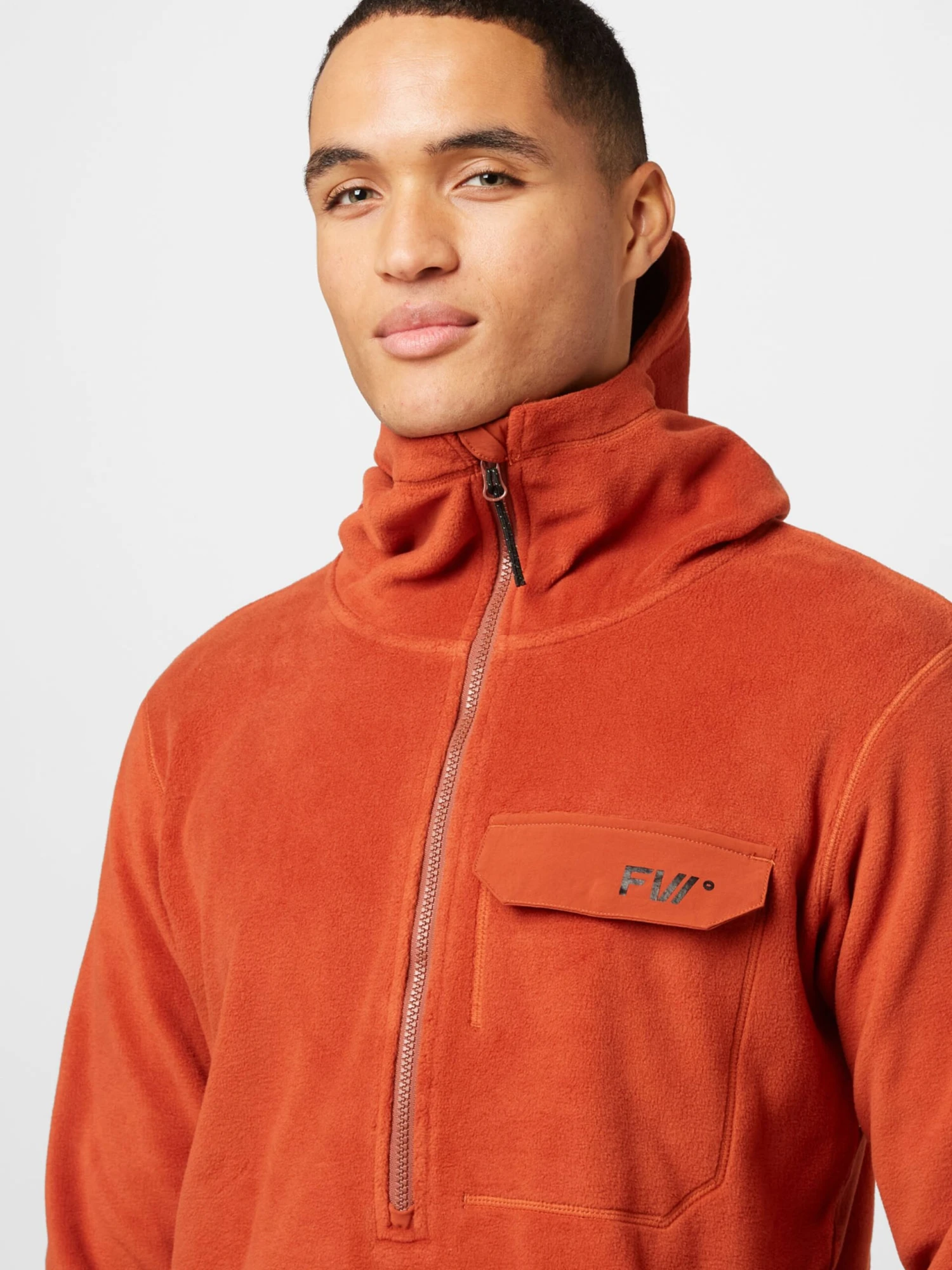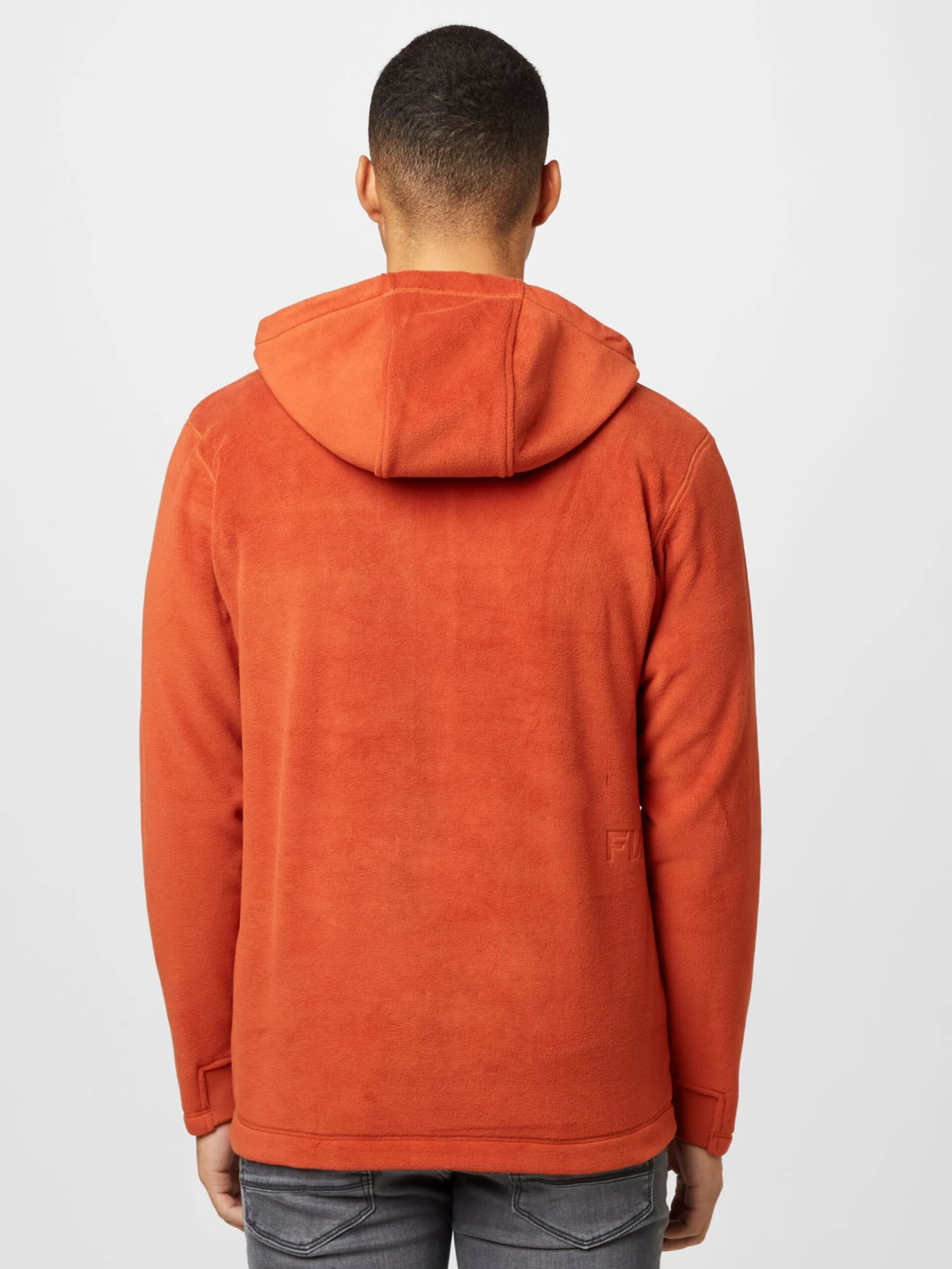 EffenCapuchonGeribbelde kraagRechte zoomBorstzakKangaroo zakVoelt zacht aanLabel printRitssluitingGerecycled polyester