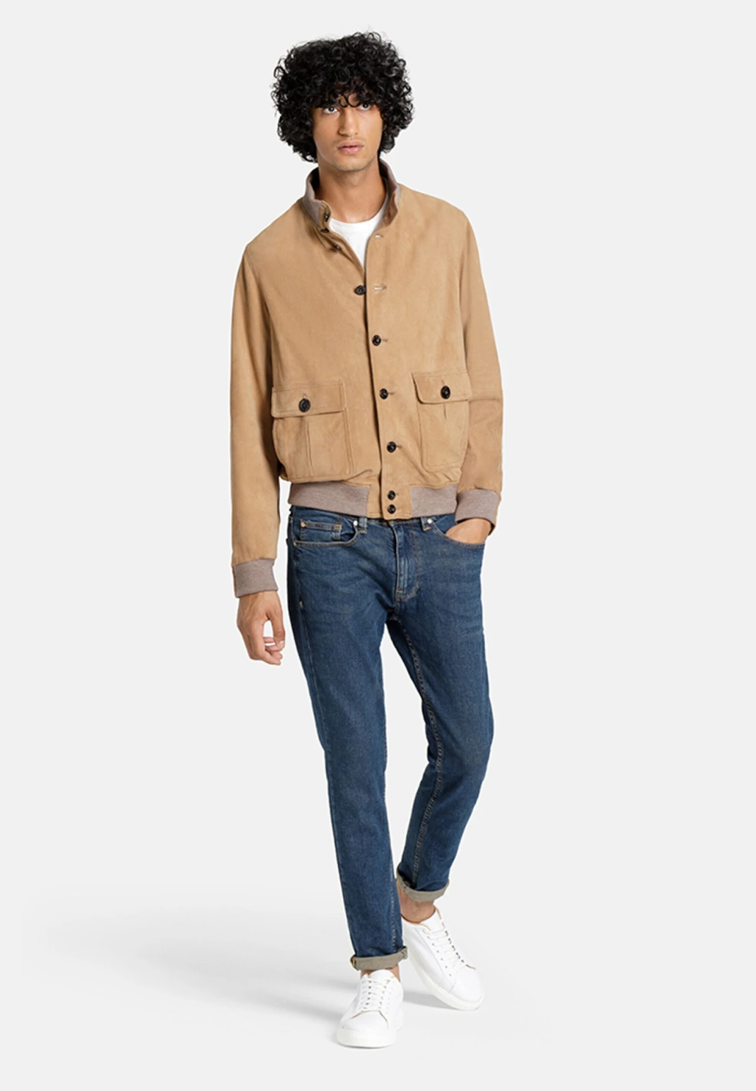 EffenLeerBlousonStaande kraagNiet gevoerdKnoopsluiting