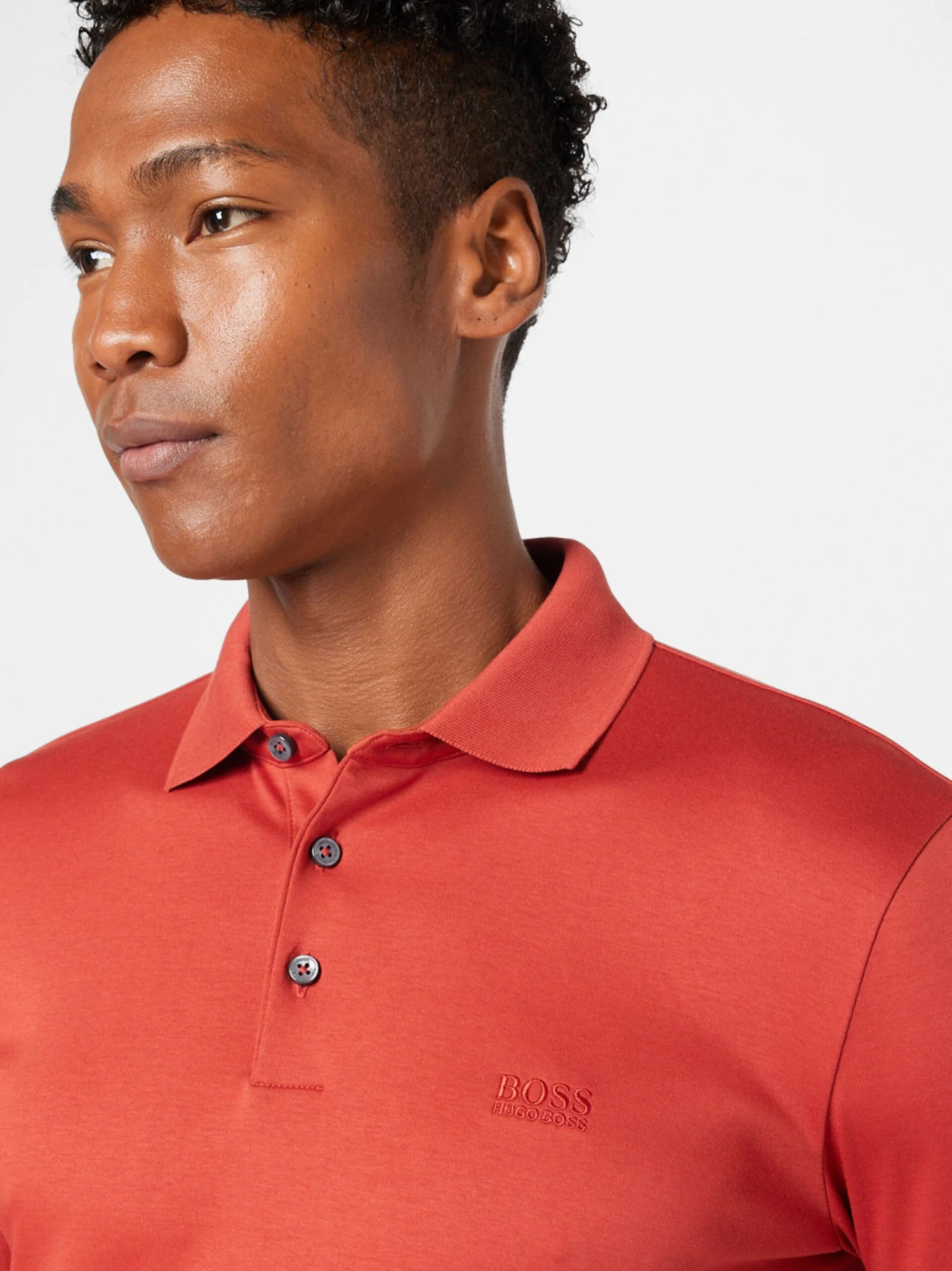 EffenJerseyPolokraagGevoerde zoom/randRechte zoomKnop placketGeribd ceintuurtjeLabel borduurwerkOp staal nadenVoelt zacht aanKnoopsluiting