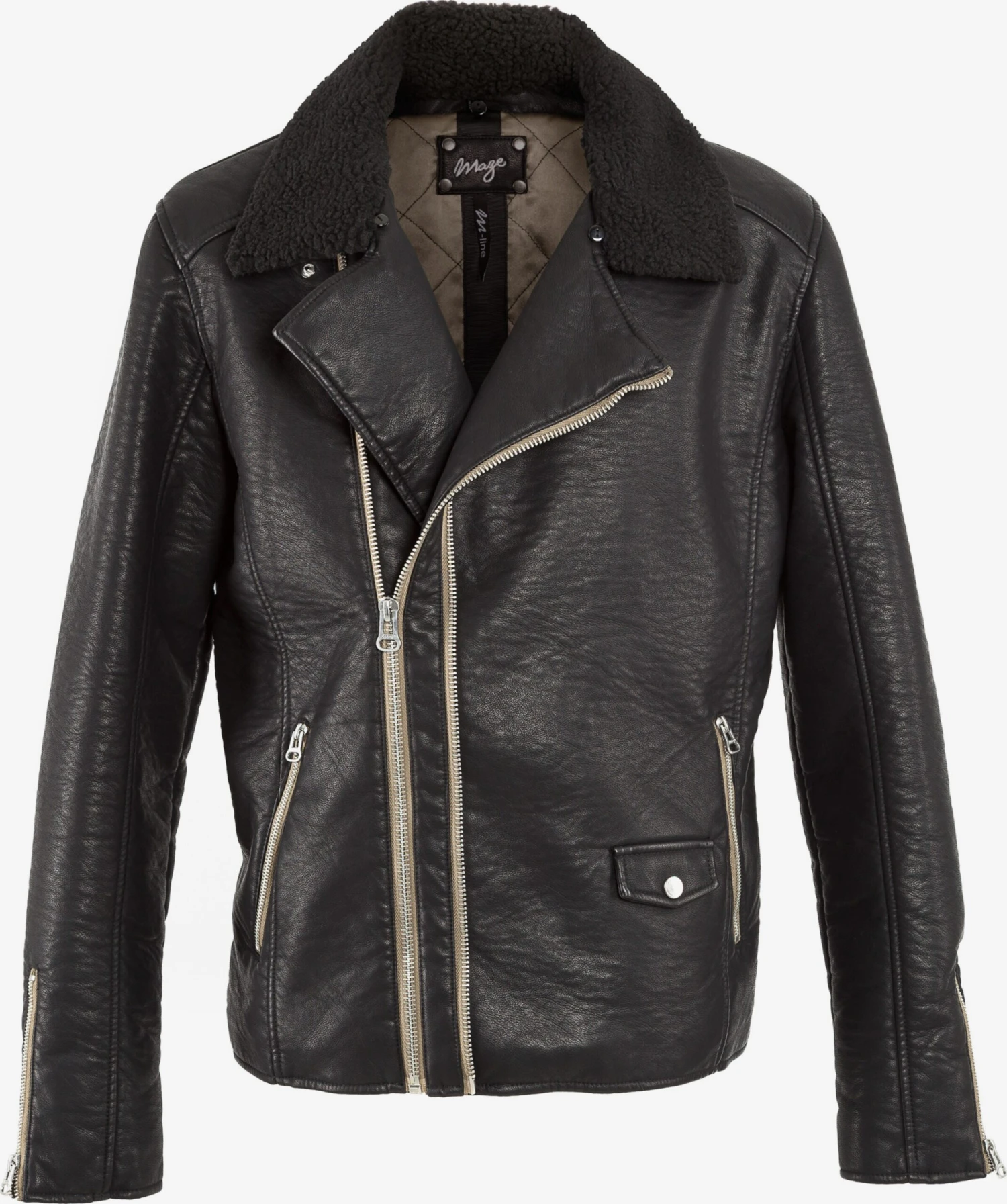 EffenBikerjackMouw ritsRevers kraagOpgezette zakkenRitszakken aan de zijkantSchuine ritsLabel patch/label flagLicht gevoerd