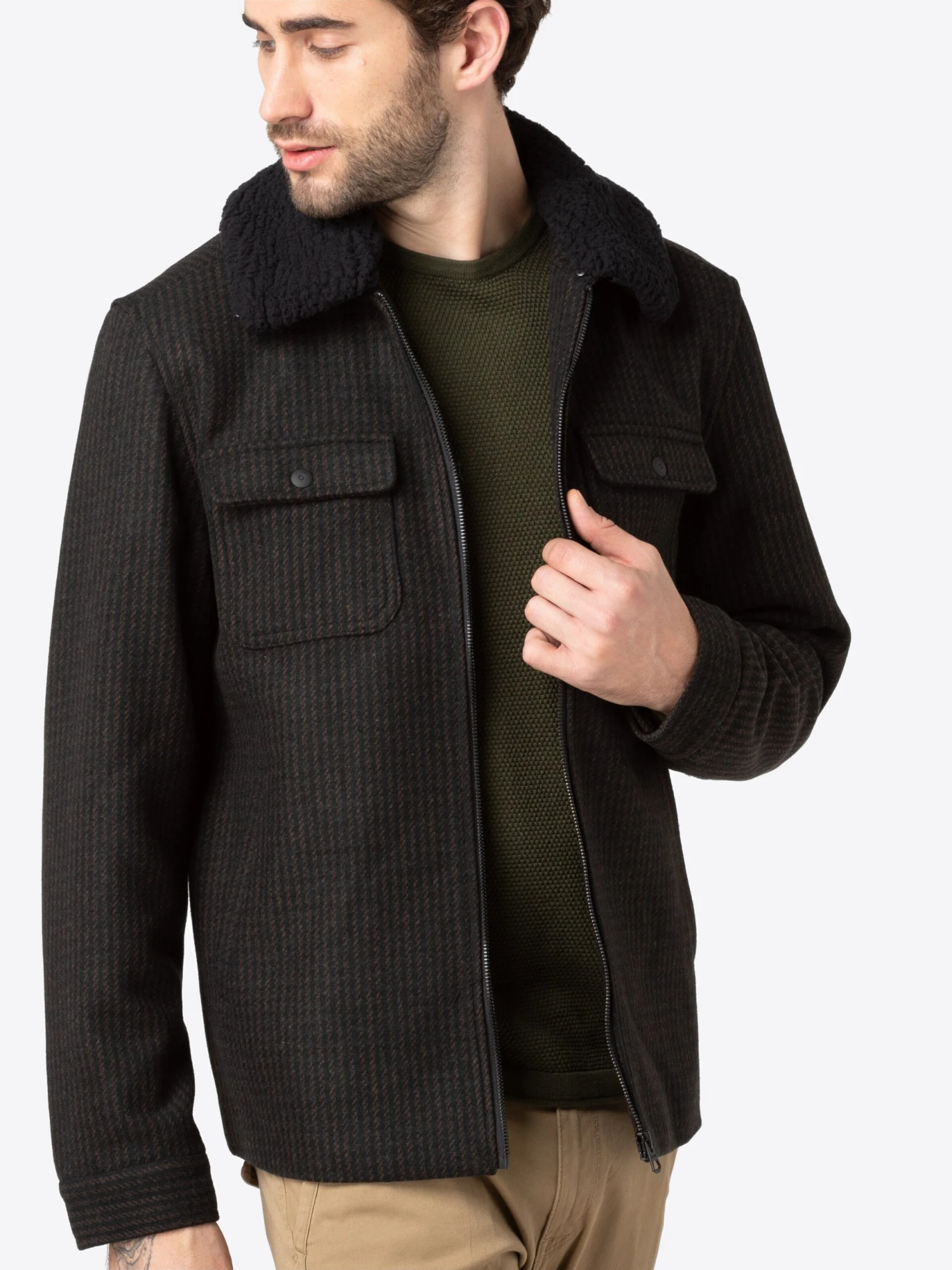 EffenBlousonRitssluiting1-knoops manchettenRechte manchettenTurn-down kraagBorstzakZakken aan de zijkantAll-over patroonVaste gripLicht gevoerd