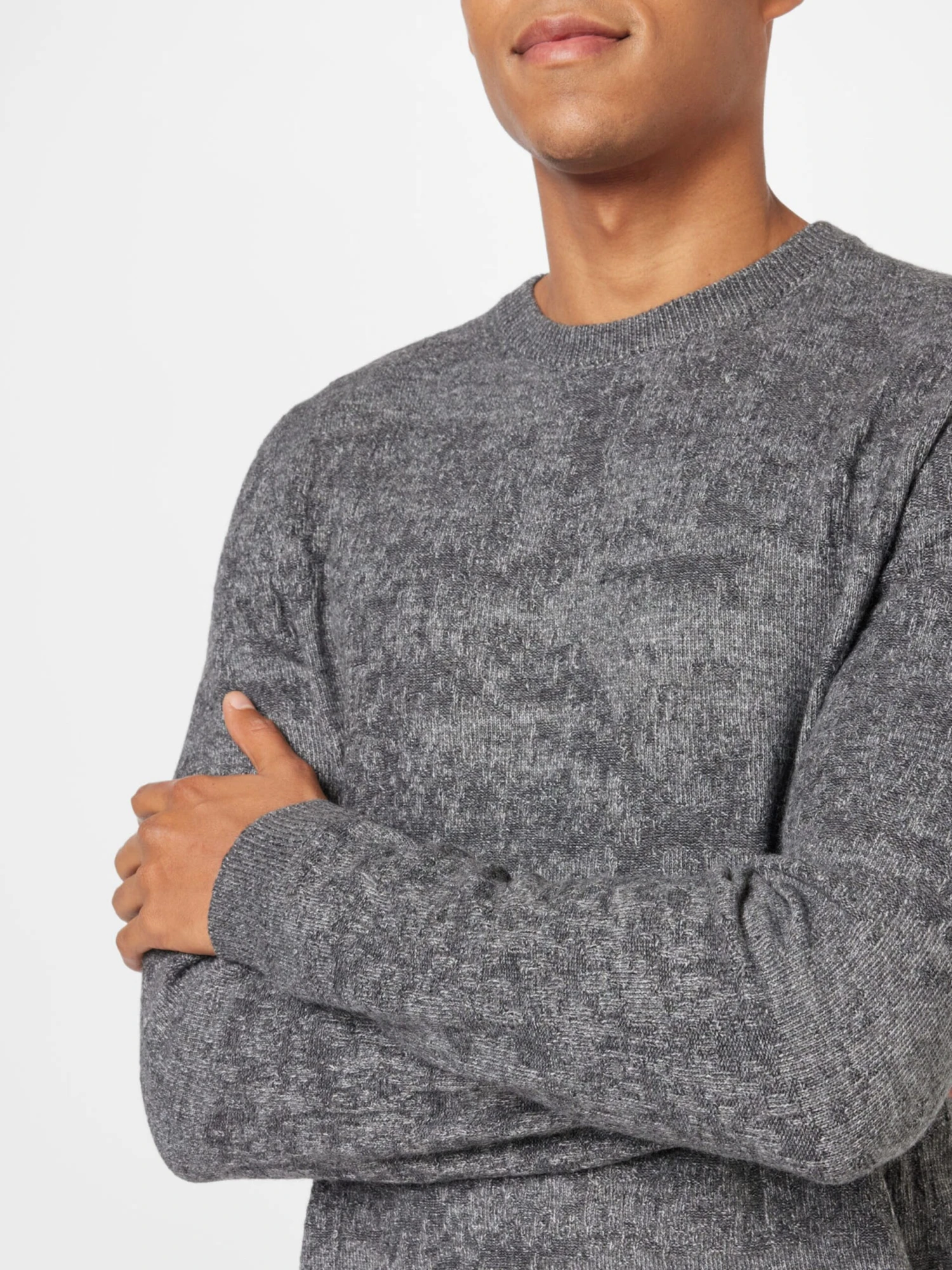 MélangeRonde halsGeribbelde kraagRechte zoomGeribd ceintuurtjeFully fashionedMet textuurVoelt zacht aan
