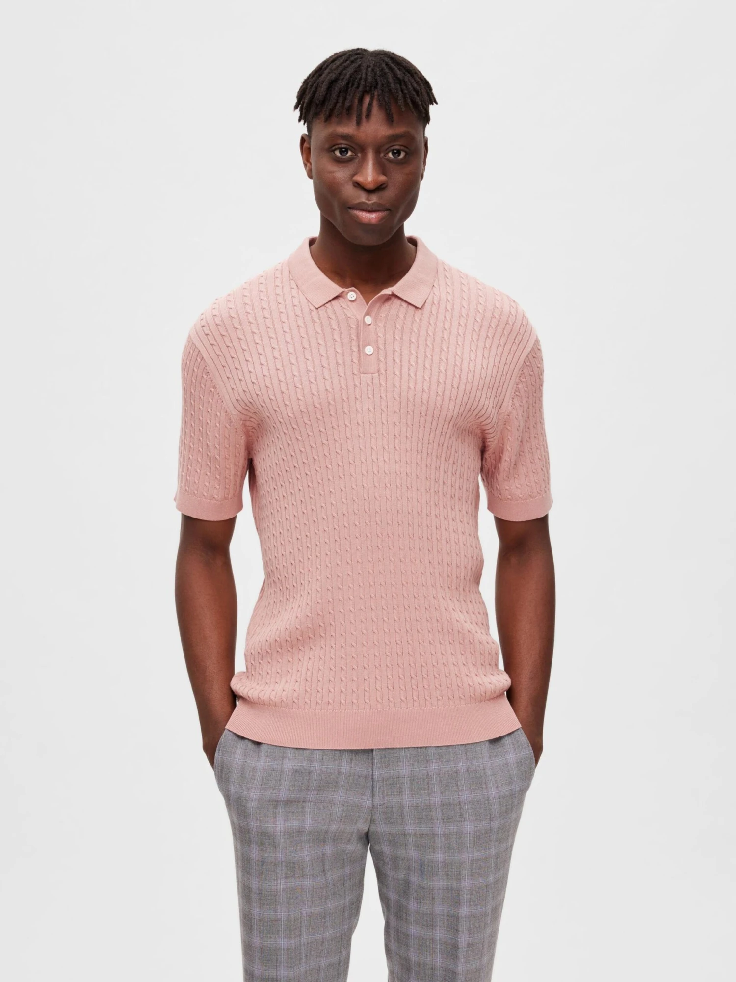EffenKatoenPolokraagGeribbelde kraagGeribd ceintuurtjeVlecht breiOp staal nadenMet textuurVoelt zacht aanKnoopsluitingKatoen (biologisch geteeld)