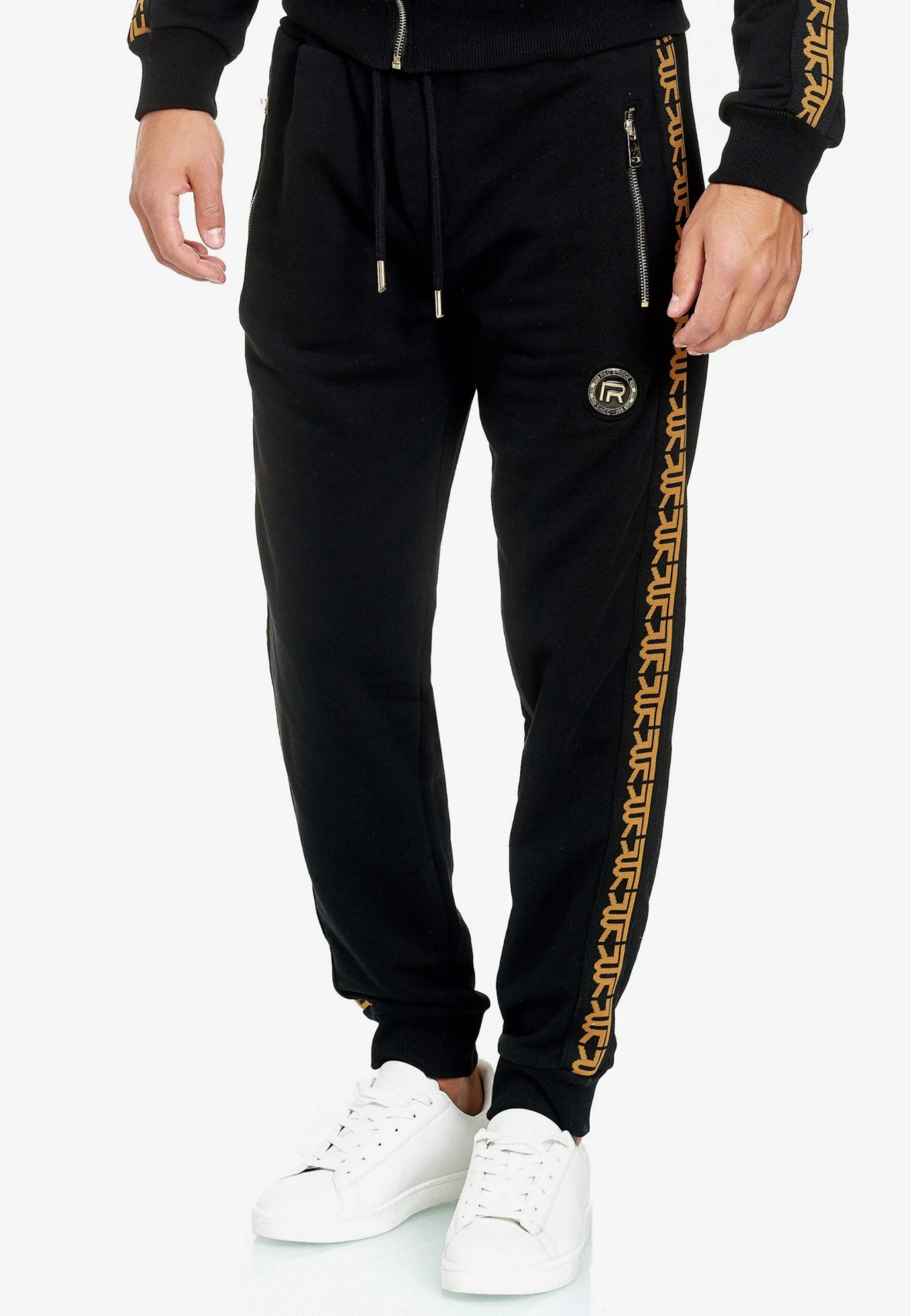 EffenSweatstofTaille met trekkoordElastische taille/zoomZijdelingse strepenRitszakken aan de zijkantLabel plaatjeBuigzame gripMetalen oogjes