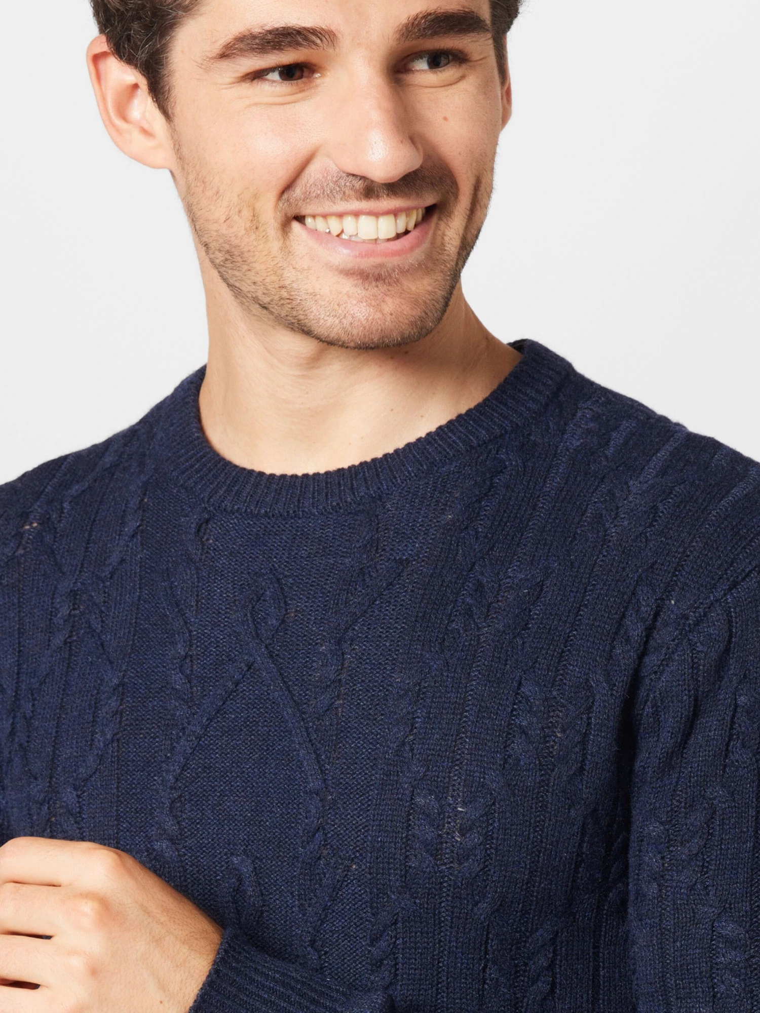 EffenRonde halsGeribbelde kraagRechte zoomVlecht breiMet textuurVoelt zacht aanGerecycled wol