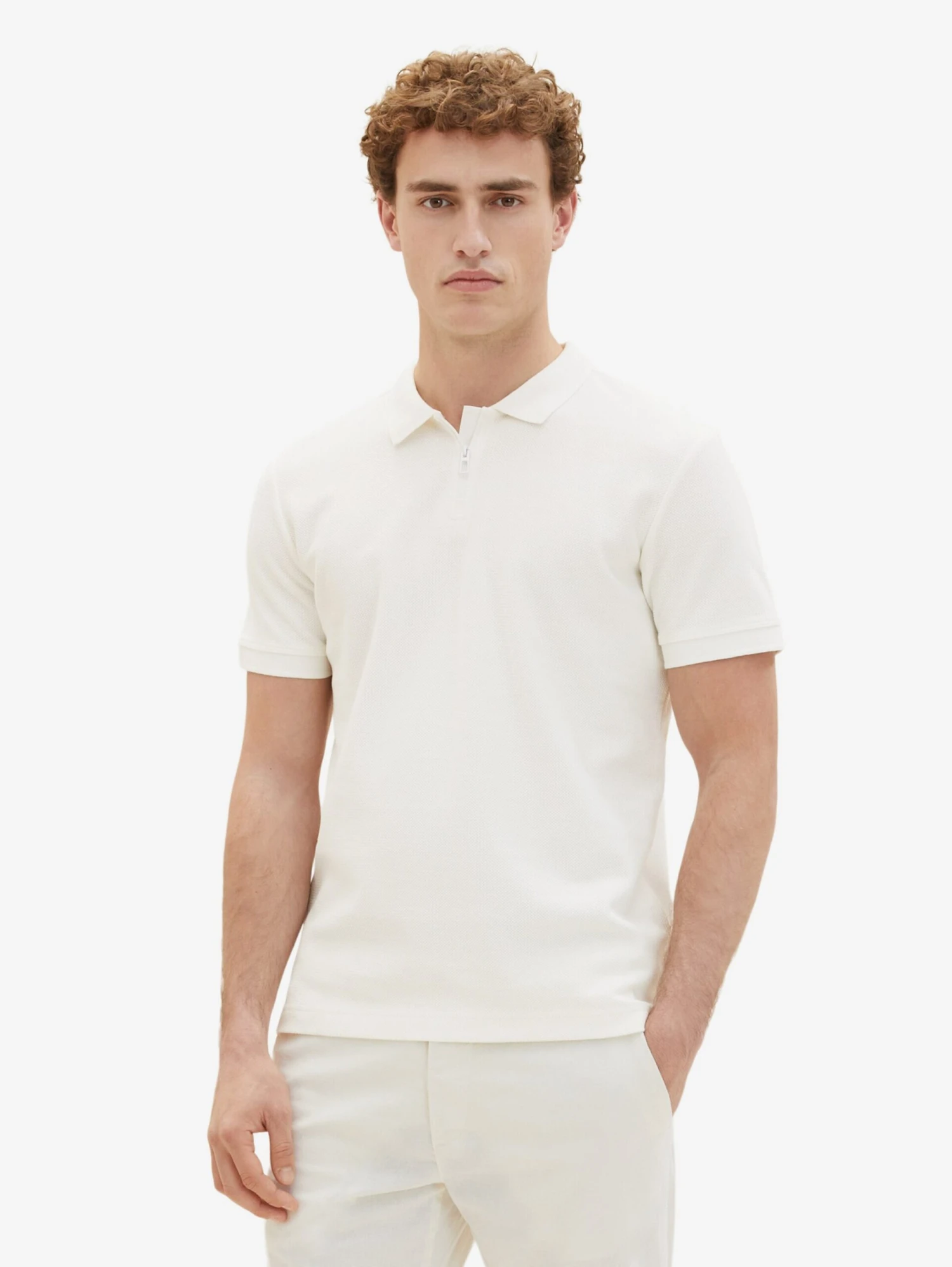 EffenKatoenPolokraagGevoerde zoom/randRechte zoomHalve ritsOp staal nadenVoelt zacht aanRitssluiting
